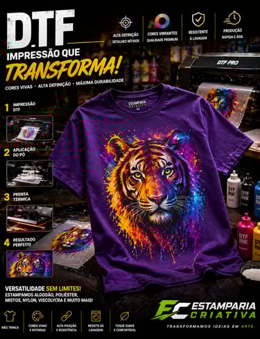 Transformamos suas ideias em estampas que destacam sua marca com qualidade e cuidado.